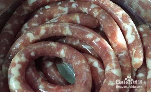 2. 灌肠:将腌制好的猪肉馅放入香肠皮中,用筷子或灌肠器将肉馅均匀地填充到香肠皮中,注意不要留有空气。